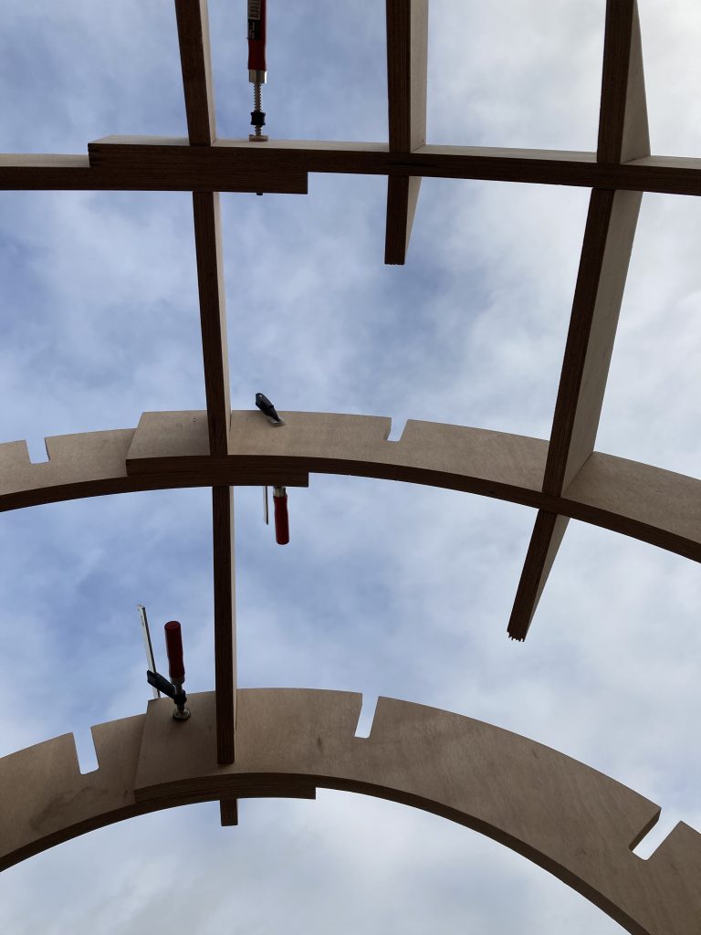 4. Combining the wooden puzzel-pieces for the wool construction.