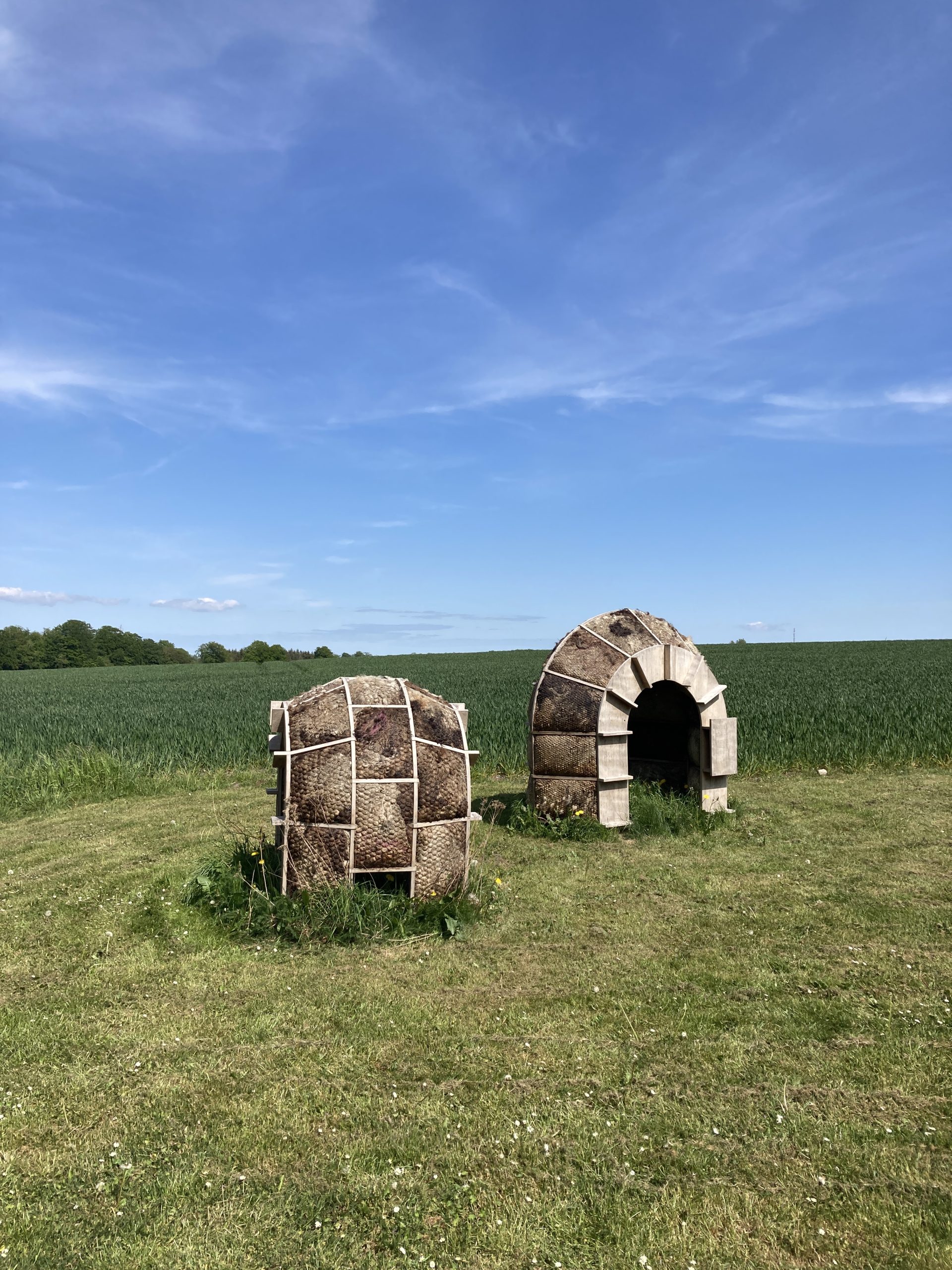 Design; Test, two diverse installations of woolen buildnigblocks made with two different metal frontcovers. Tested at Trudsstrupgods, Rye DK, from the 04.12.2021